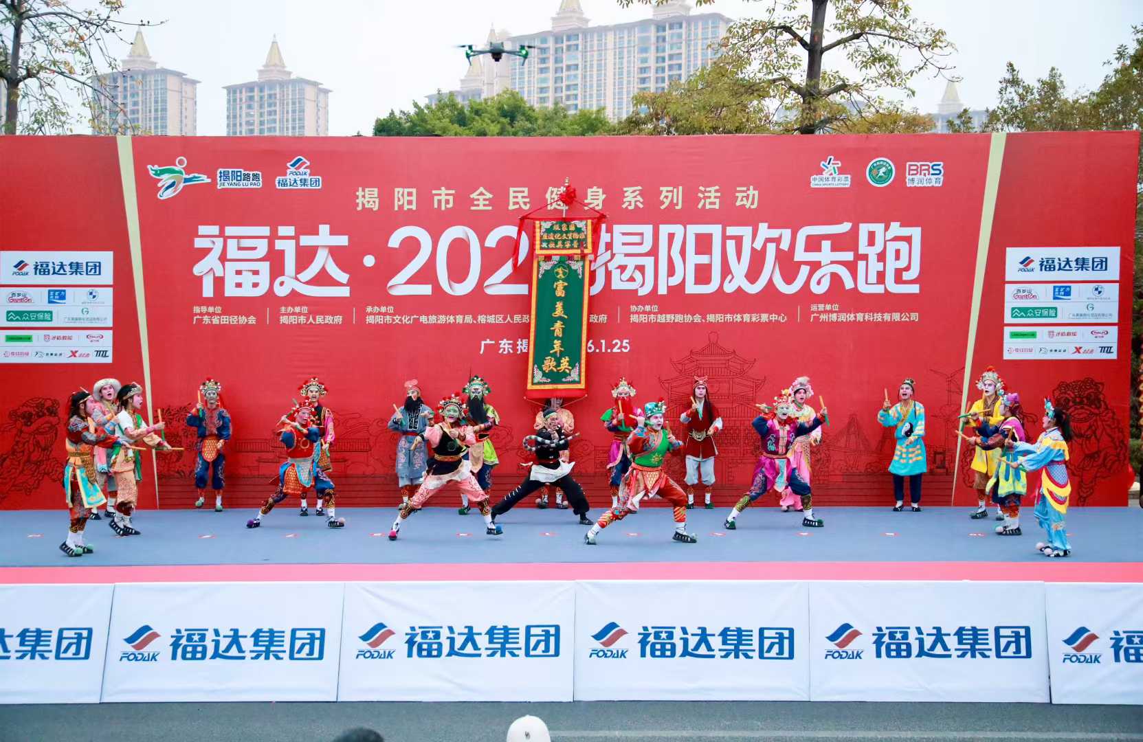 起跑仪式上,普宁富美青年英歌队带来的《英歌舞》气势磅礴,揭阳市孙淑强狮艺武术馆的《青狮》表演灵动威武,瞬间点燃现场气氛。