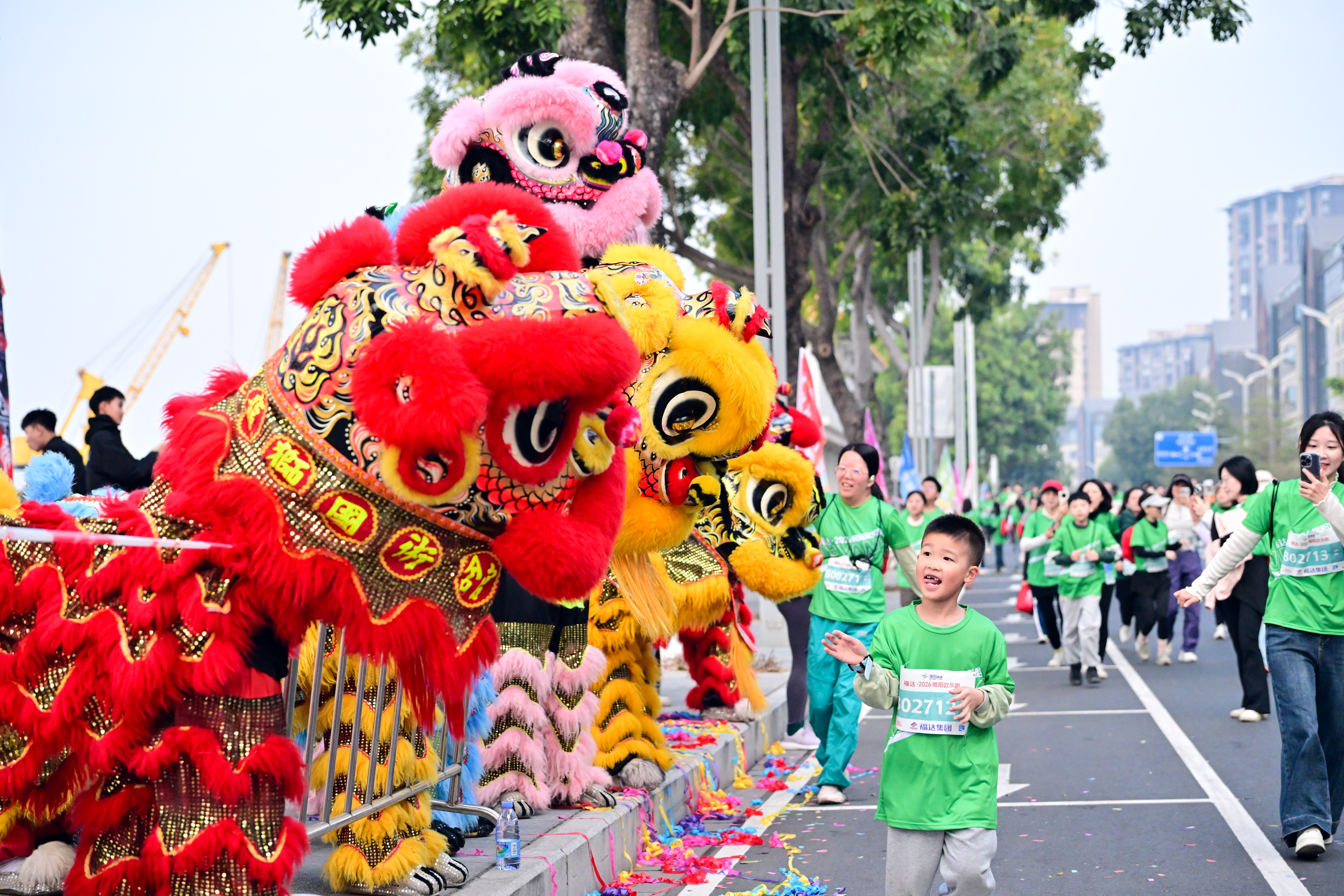终点亦是“欢乐的海洋”——英歌舞、舞龙、大锣鼓、歌曲演唱等丰富的节目轮番上演,共同构筑了一条声浪与温情交织的冲刺长廊。
