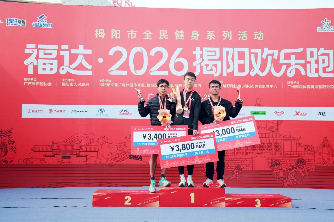 全民健身,欢乐揭阳。2026年1月25日7:30,福达·2026揭阳欢乐跑在揭阳楼广场活力开跑。本次赛事特邀孙淑伟、吴伟欢、蔡育坤三位揭阳籍体育健儿领跑,携手5000名选手齐聚榕江之滨,以奔跑的姿态感受古城揭阳的生机与热情,共同开启一场融合地方文化、城市风貌与全民健身的欢乐盛会。